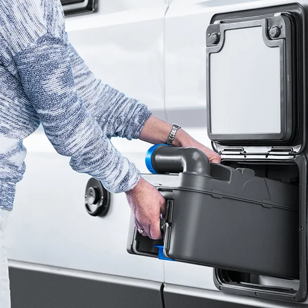 - Tahliye kapağını aç: Tuvalet atıklarını belirlenmiş boşaltma istasyonuna dök.